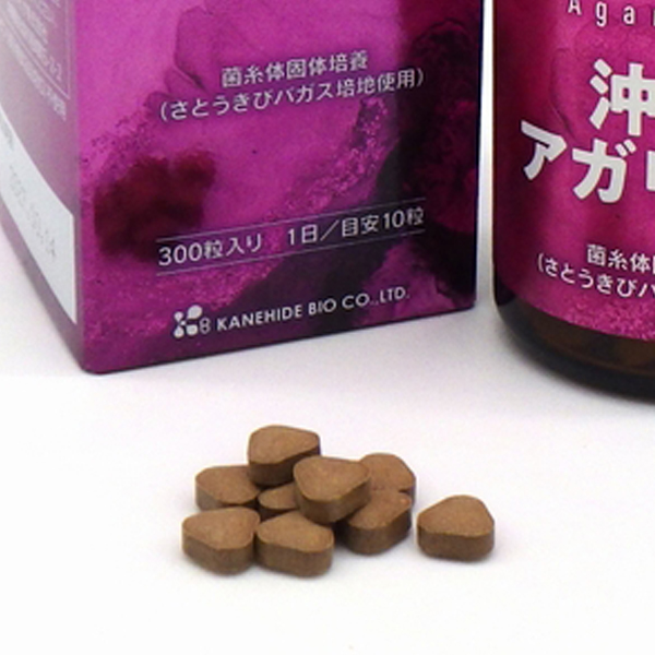 Agaricus Mycelium Tablets are finished as easy swallowing tablets by extracting the Kanehide Bio's original Agaricus Mycelium which is solid cultured for four month at the sugarcane bagasse medium.
