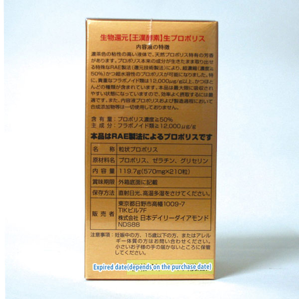 A high concentrate propolis, Raw Propolis is made with high quality poplar propolis. It contains over 12,000µg/g of flaonoid compounds and also a large amount of total flavonoids. (Thin-Layer Chromatography Measurement (TLC), ultraviolet absorption spectra measurement (V)) that is about 6000 times that of our original water-extracted liquid propolis.