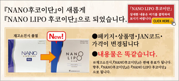 이 후코이단을 독자적 나노 테크놀로지를 활용하여 나노 캡슐화 한것이「나노 후코이단」입니다.