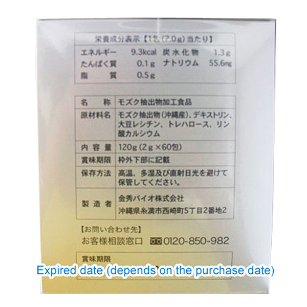 오키나와 근해에서 나는 모즈크는 바다물에 함유되여 있는 풍부한 비타민・미네랄을 듬뿍 흡수하면서 성장 하였습니다.