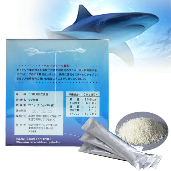 「BETTER SHARK鲨魚軟骨顆粒」使用特殊的造粒方法,不使用任何添加成分,成功地制成了顆粒狀産品。