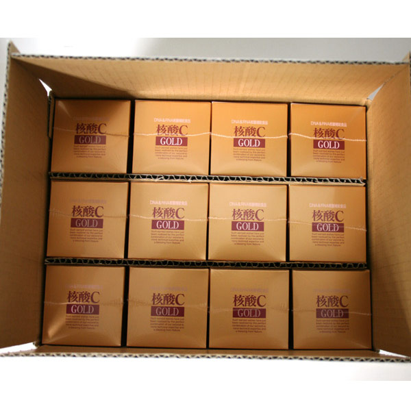 「金裝核酸C」采用從含DNA豐富的鲑魚精中提取出的純度高達95%的DNA和從酵母提取物中精制的純度高達91%的RNA爲主要成分、搭配維生素C、B群及礦物質等身體必需營養物質,精制而成。蘋果口味,是易于食用的營養補助食品。