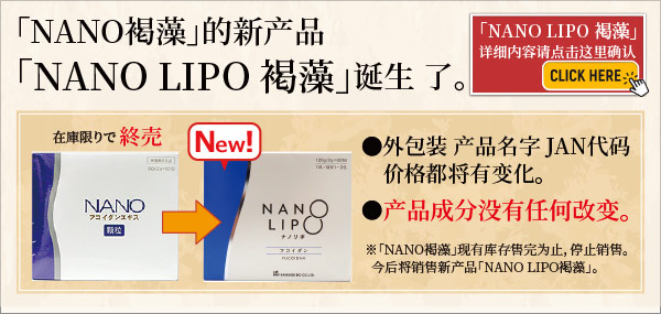 「沖繩褐藻糖膠」使用了納米技術,加工成超微粒子的納米膠囊,製成了易飲用易吸收的營養補助食品「NANO褐藻糖膠」。