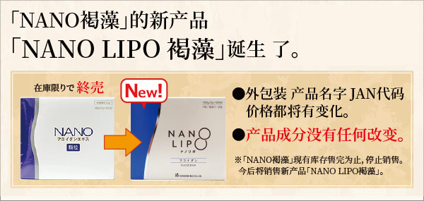 「沖繩褐藻糖膠」使用了納米技術,加工成超微粒子的納米膠囊,製成了易飲用易吸收的營養補助食品「NANO褐藻糖膠」。
