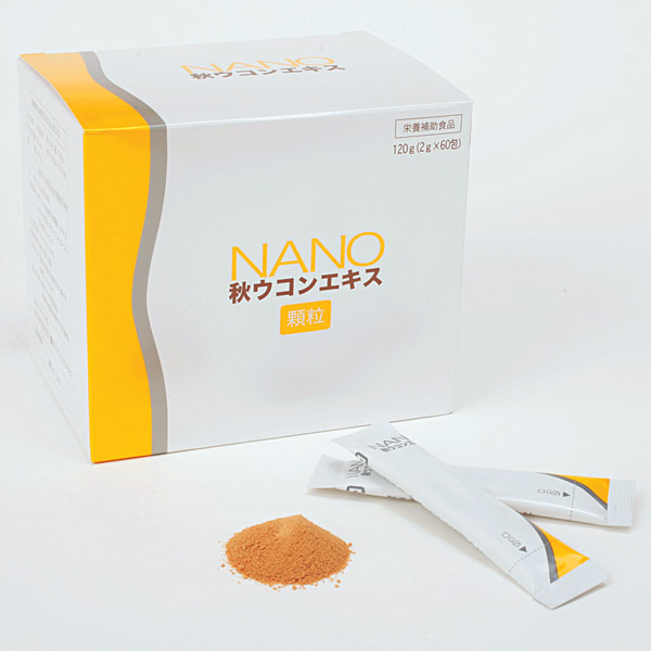 冲绳县产的高品质有机秋姜黄。 将这种「秋姜黄精华」使用纳米技术加工,做成超微粒子的纳米胶囊。「NANO秋姜黄精华」是易于饮用的营养补助食品。