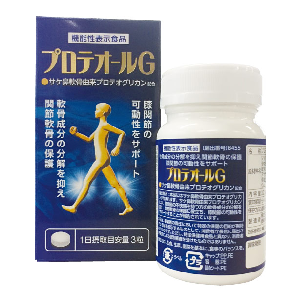 Proteall G 以新成分的蛋白聚糖为首,并配以软骨素、N-乙酰葡糖胺、透明质酸、Ⅱ型胶原蛋白等精制而成。1天只需3粒!可以直接嚼碎服用。(也可用水送服。)